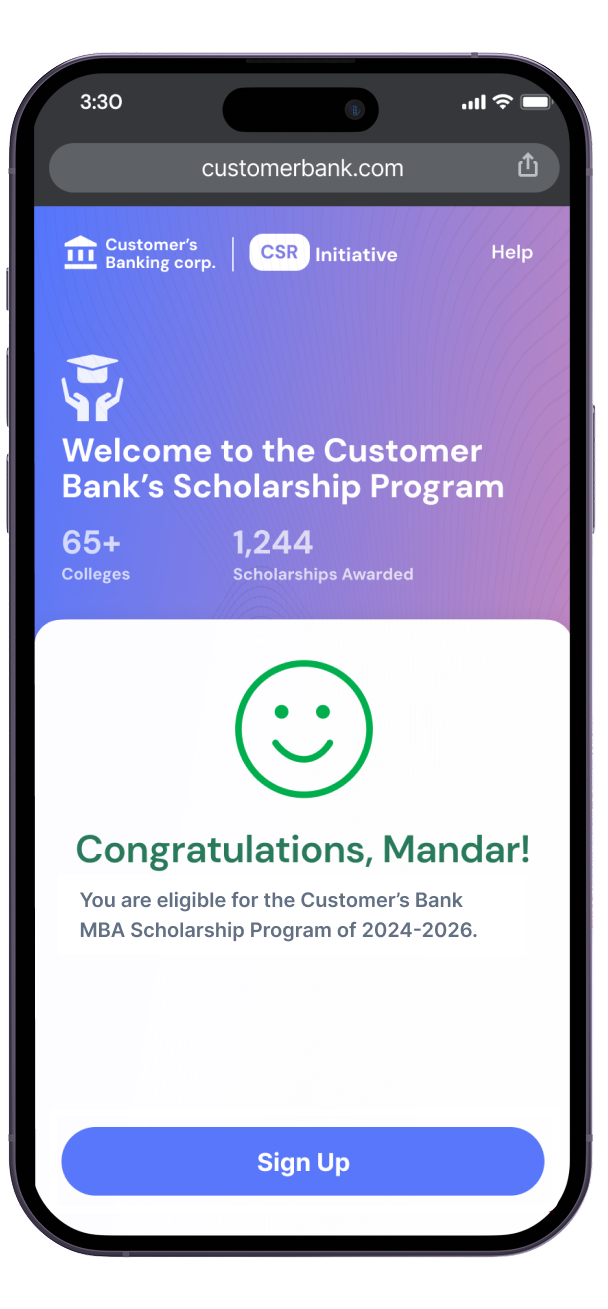 As part of their CSR (Corporate Social Responsibility) initiative, the leading Indian banking corporation wanted to provide MBA scholarships to underprivileged students nationwide.