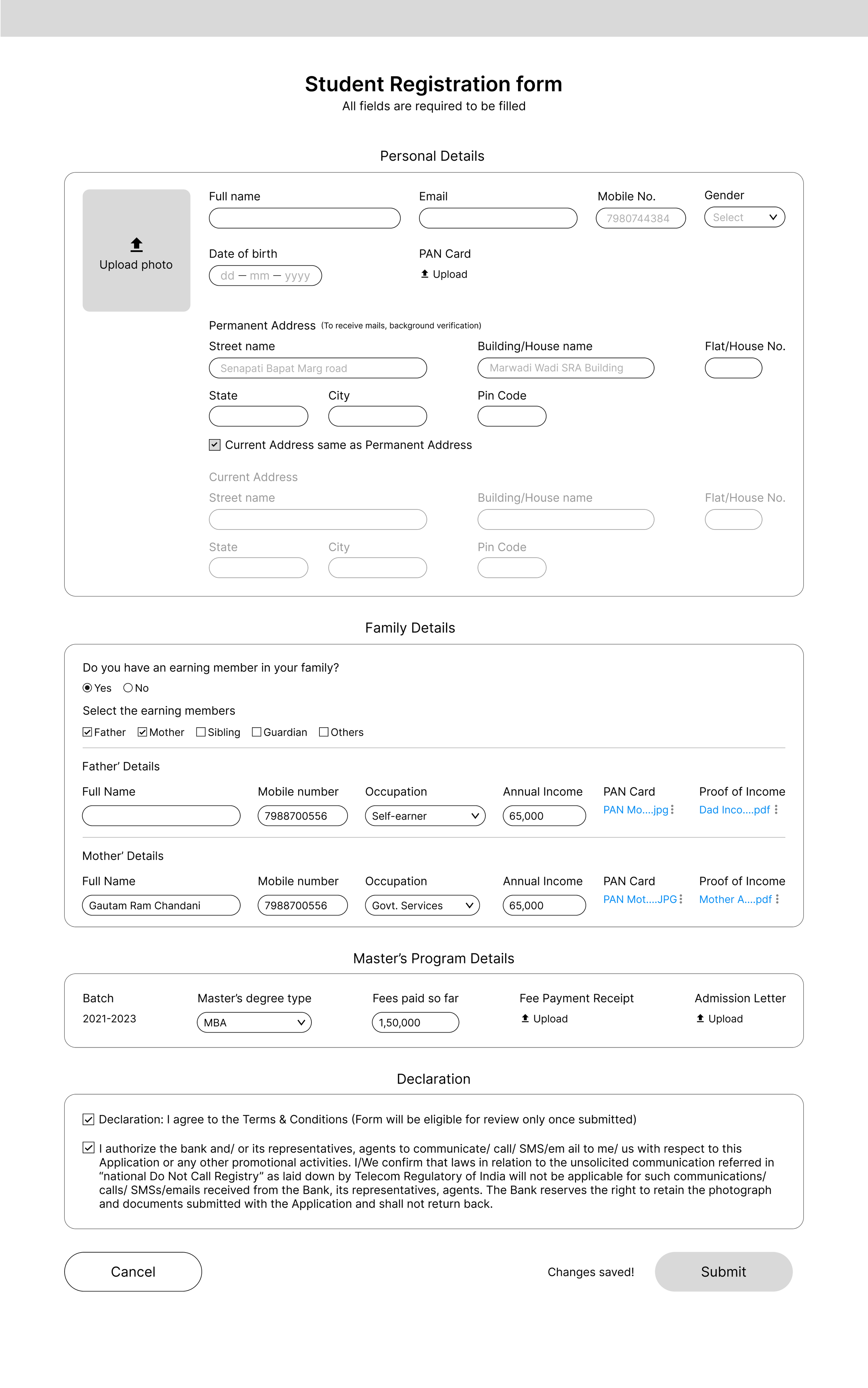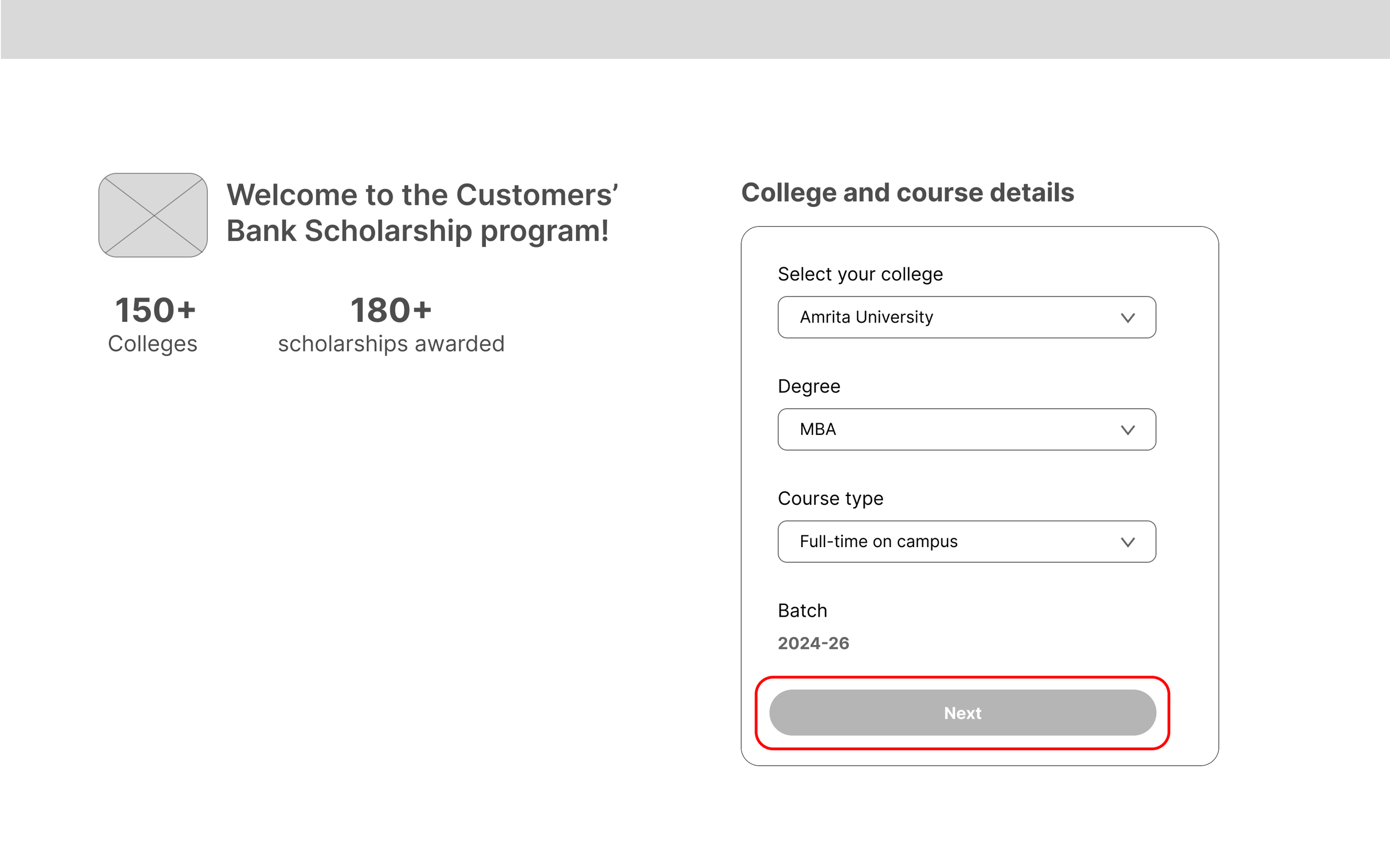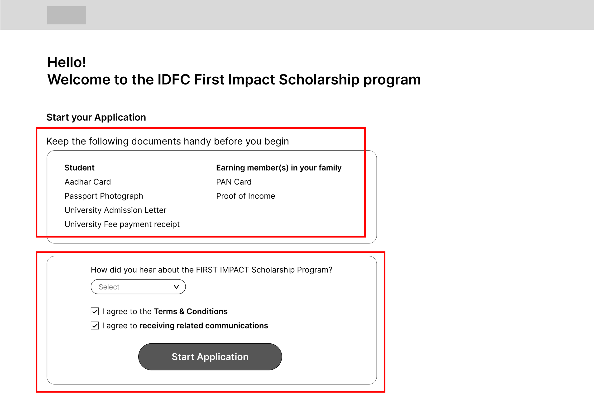 As I got onboarded to the project, I met the business team to get more details of the project. I was given the BRD for reference including details such as the amount awarded, eligibility criteria for the students applying, and the platform the web app was going to built on.