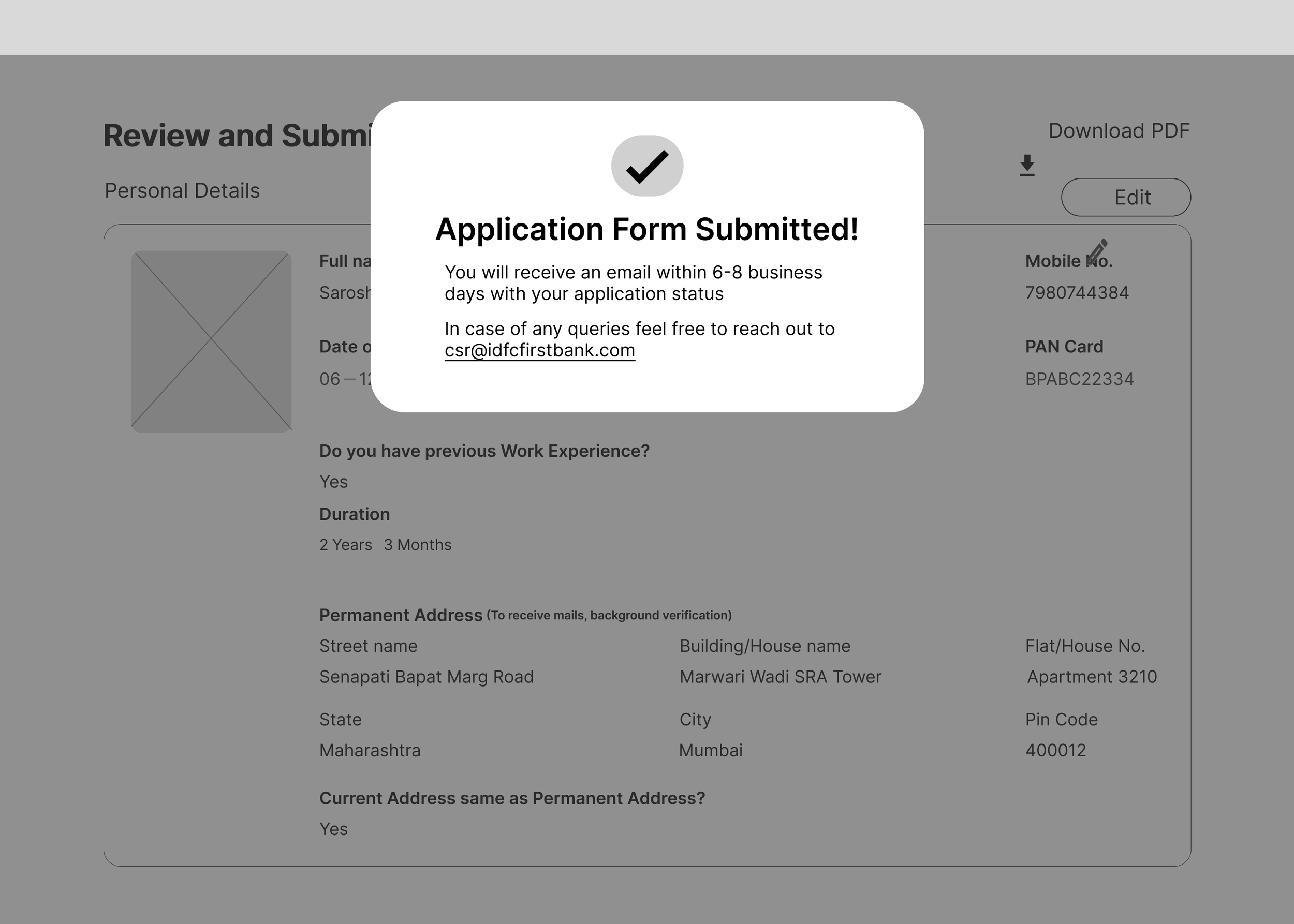 • Having an entire page dedicated to form submission confirmation seems a bit overkill. Rather having a modal window show up on the same page won’t break the flow or scare the user for a few seconds.