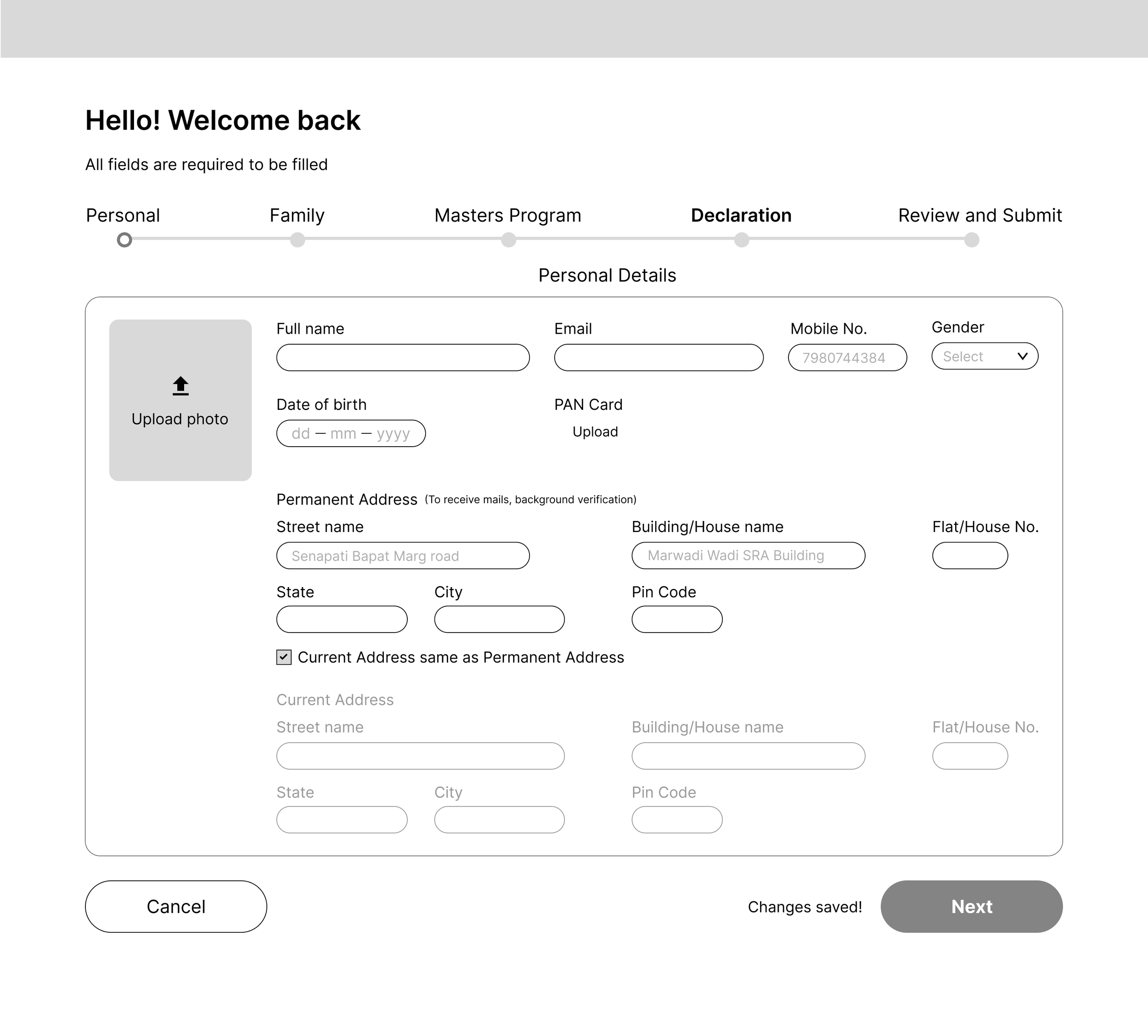 • Flexibility - dividing the process into 3 tabs gave the users the option to jump between each and fill the form according to their preference.