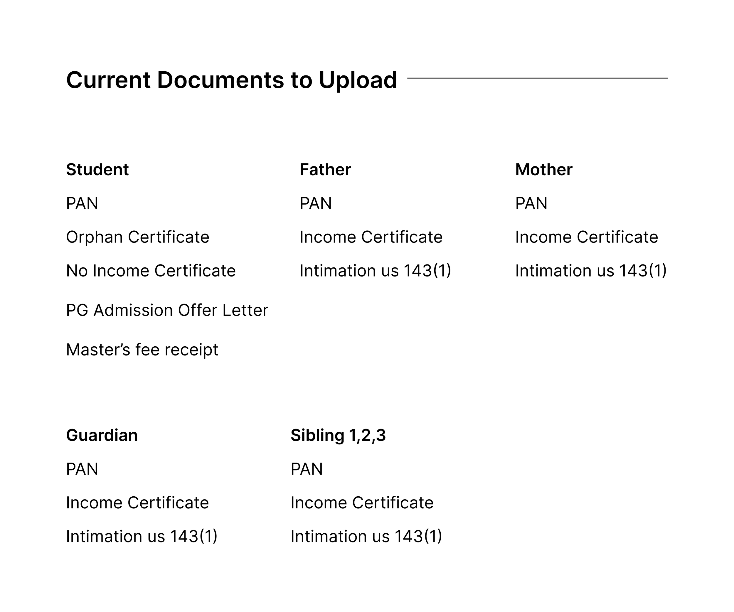 If the student is eligible to apply, depending on whom they select as the earning members of their family, they would need to upload income-proof documents for each earning member.