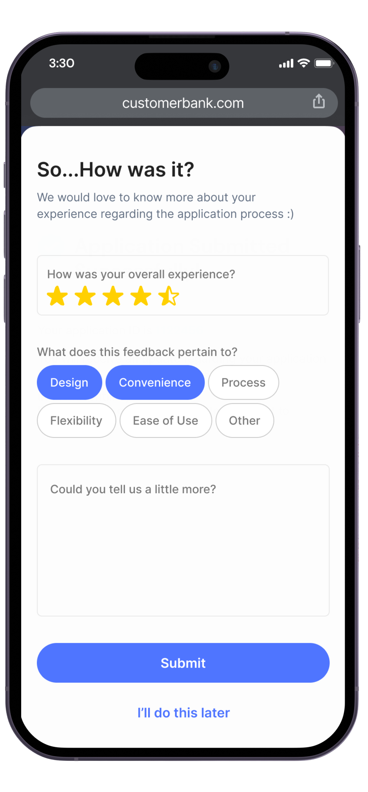 UX issue - Since checking eligibility per question in real-time was back-end effort heavy, the user would only know if they were eligible once they submitted the entire form—more user effort.