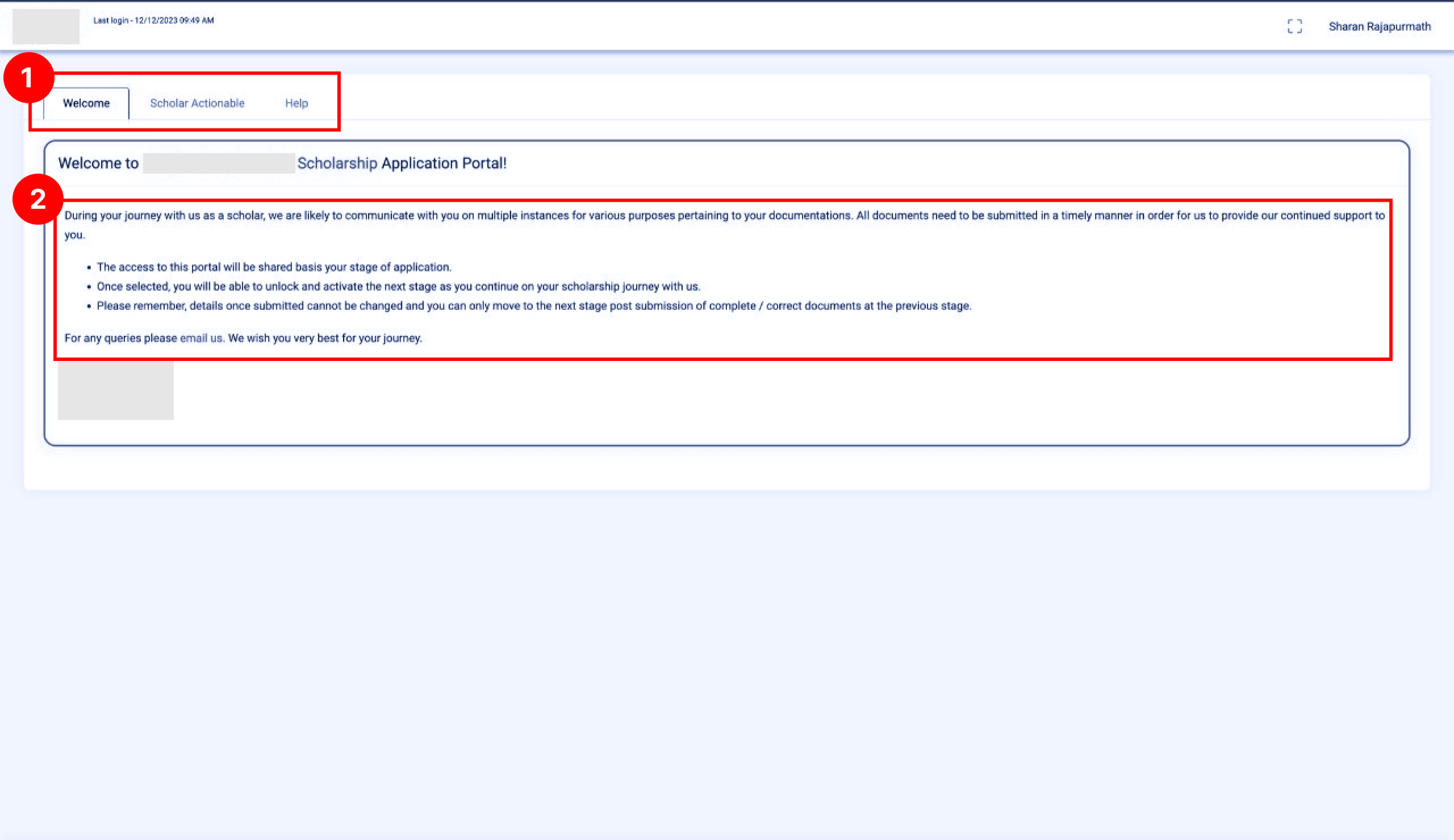 Eligible students can start their scholarship application form by logging in. Whereas new students can click register to begin the eligibility process.